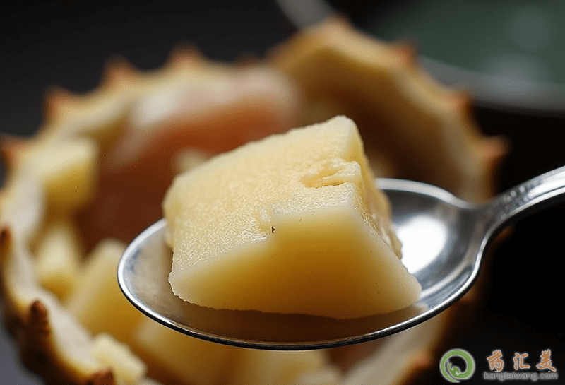 4、買回來的榴蓮太生,直接吃太澀,不好吃,丟掉又可惜。可以將生榴蓮拿來燉湯哦,既不會浪費,還能享受到榴蓮燉湯的美味。將榴蓮肉取出,放盤子里備用。準備半只雞,洗干凈切塊。過沸水棹燙去血水。然后將雞肉放入鍋中,加入適量的水。然后將生榴蓮放進鍋中跟雞肉一起大火燒開,轉為小火慢燉1個小時。最后加入適量的鹽調味即可食用。