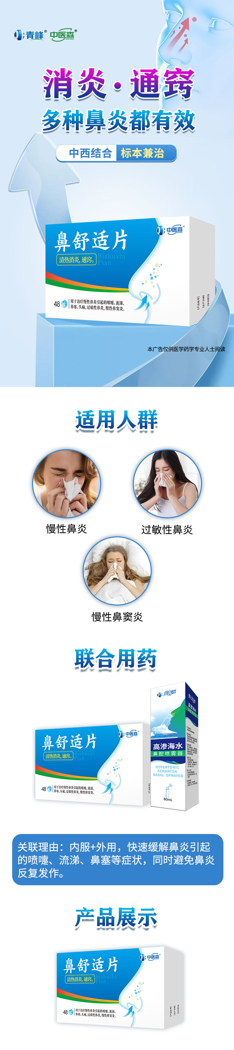 【關(guān)聯(lián)理由】1、鼻舒適片+鹽酸西替利嗪片——用于緩解過敏性鼻炎有關(guān)的癥狀,如打噴嚏、流涕、鼻癢、鼻塞以及眼部癢及燒灼感。