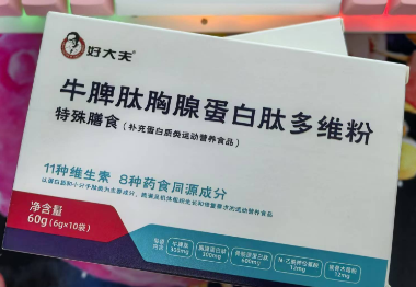 牛脾肽胸腺蛋白肽多維粉是正規的,是好醫生旗下的好大夫品牌的,牛脾肽胸腺蛋白肽多維粉不是藥品,是屬于特殊膳食食品,補充蛋白質類運動營養食品。批準文號為食品許可證編號SC1143161107…